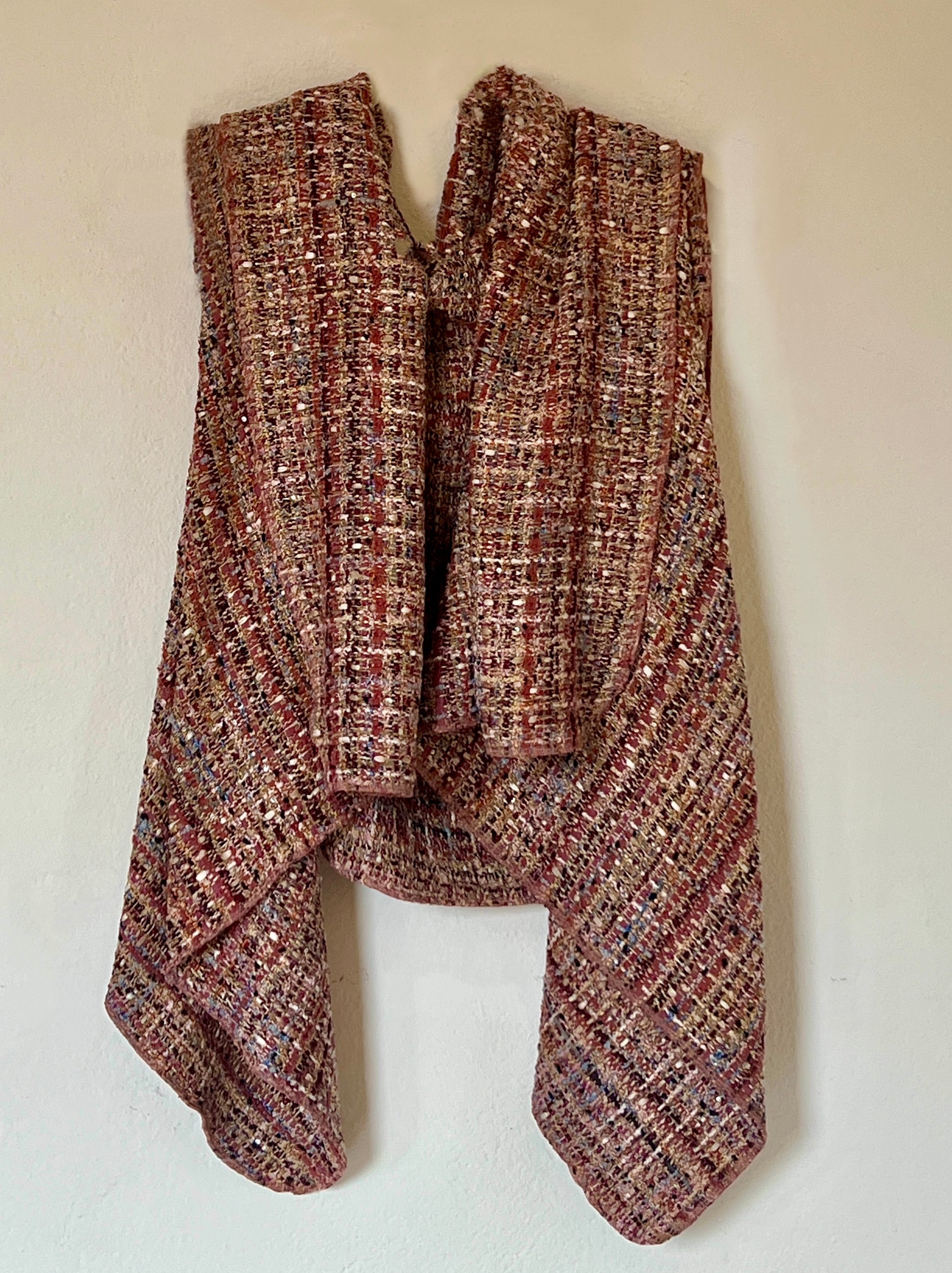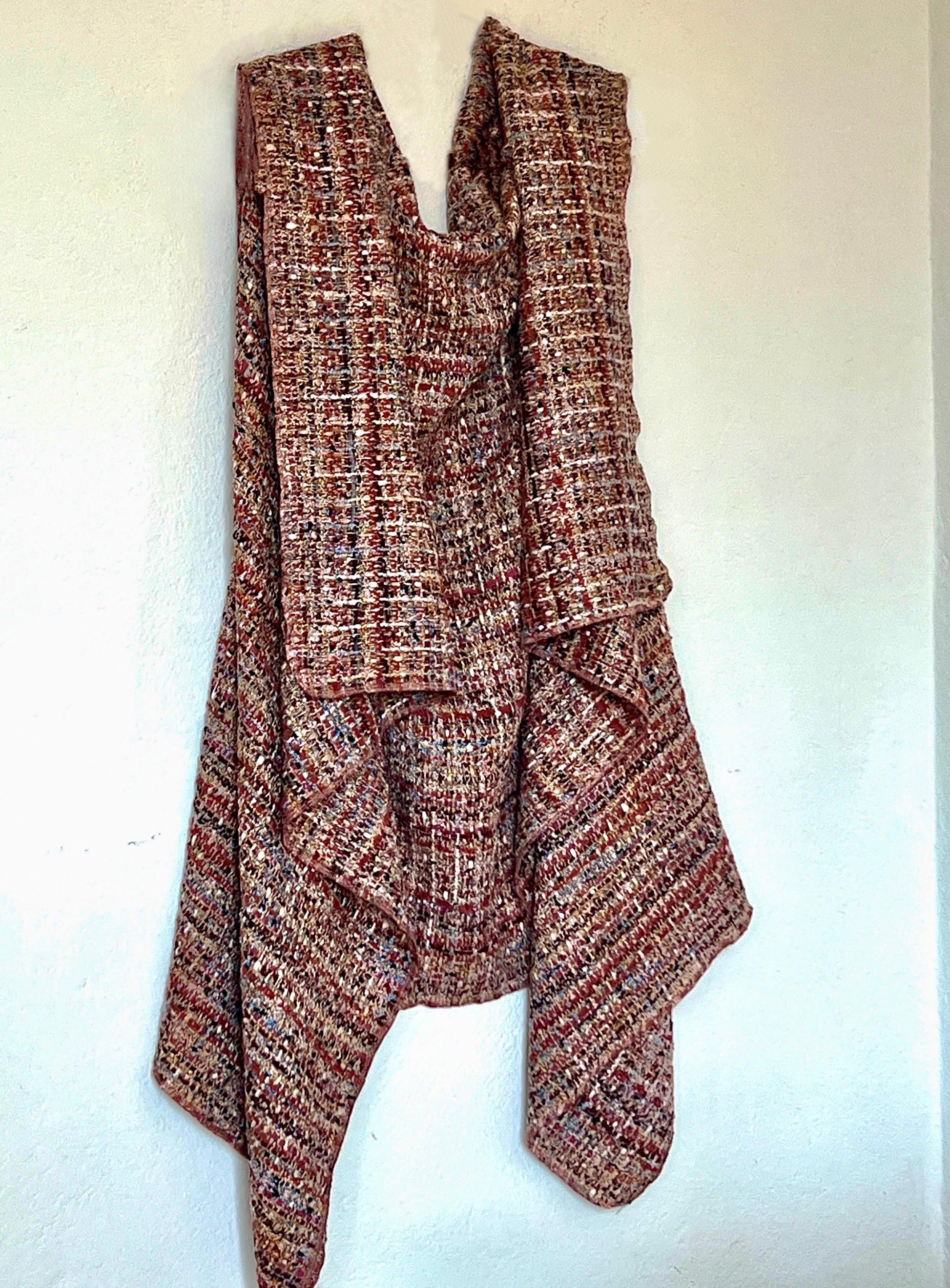 Chaleco con caracter con una presencia rica y envolvente que destaca por su mezcla de tonos cálidos y matizados. Su diseño permite llevarlo de dos maneras, jugando con la caída y el cruce de la prenda para adaptarla al estilo y al momento. La textura visual aporta profundidad y personalidad, convirtiéndolo en una pieza especial que transforma cualquier look sin esfuerzo. Ideal para dar un toque sofisticado y diferente, tanto en conjuntos cotidianos como en ocasiones más especiales.