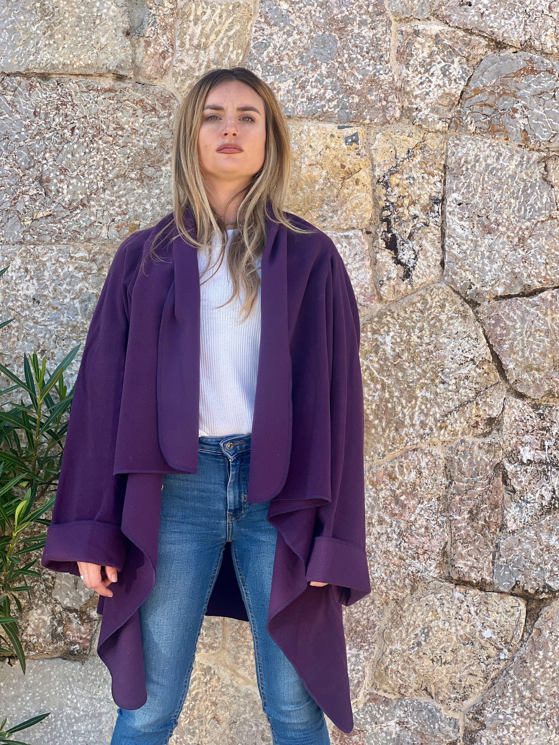 Abrigo de textura suave y tacto cálido. Su tejido ligero ofrece una caída fluida y envolvente, creando un drapeado elegante y femenino, perfecto para looks sofisticados y atemporales.