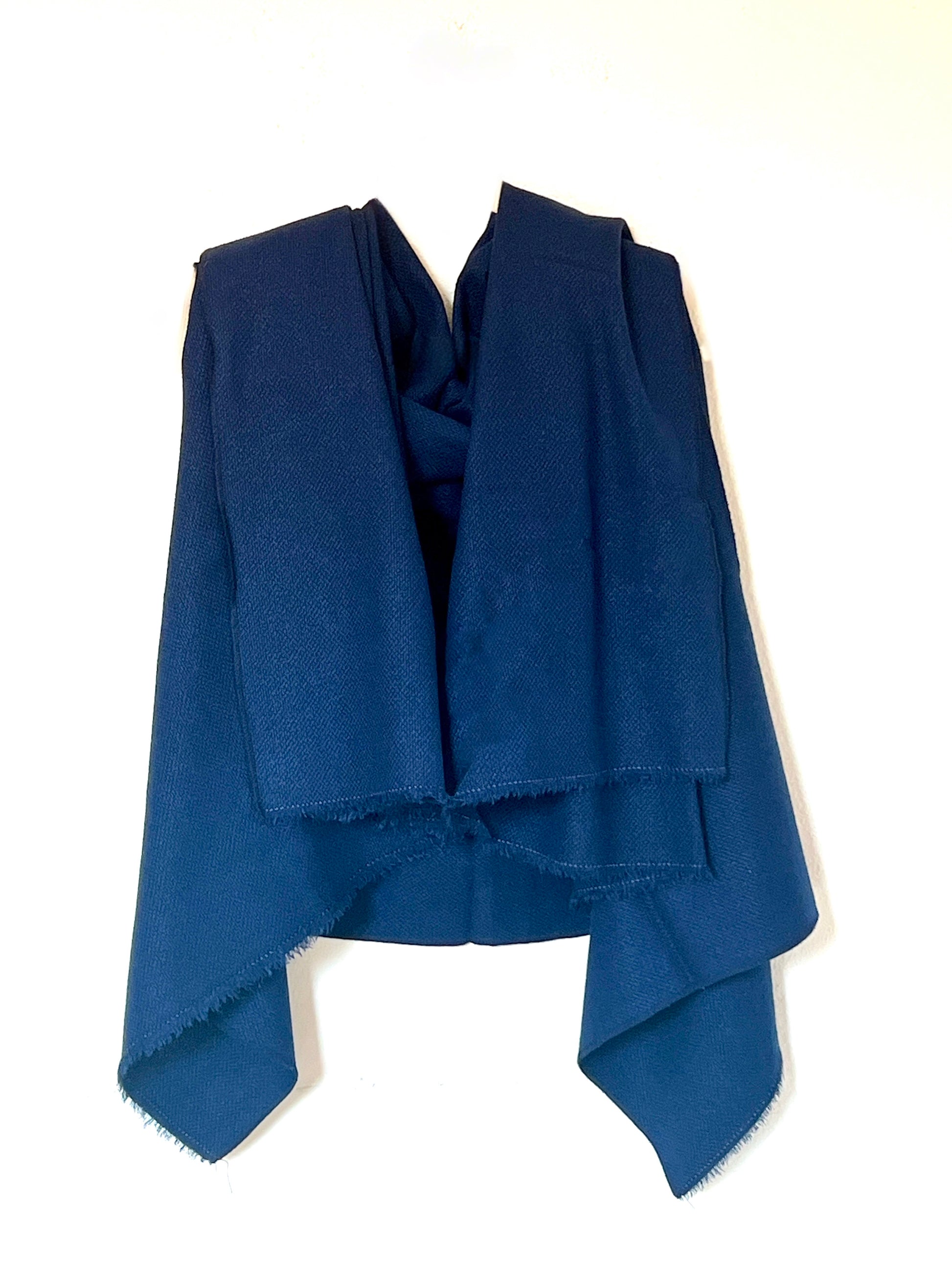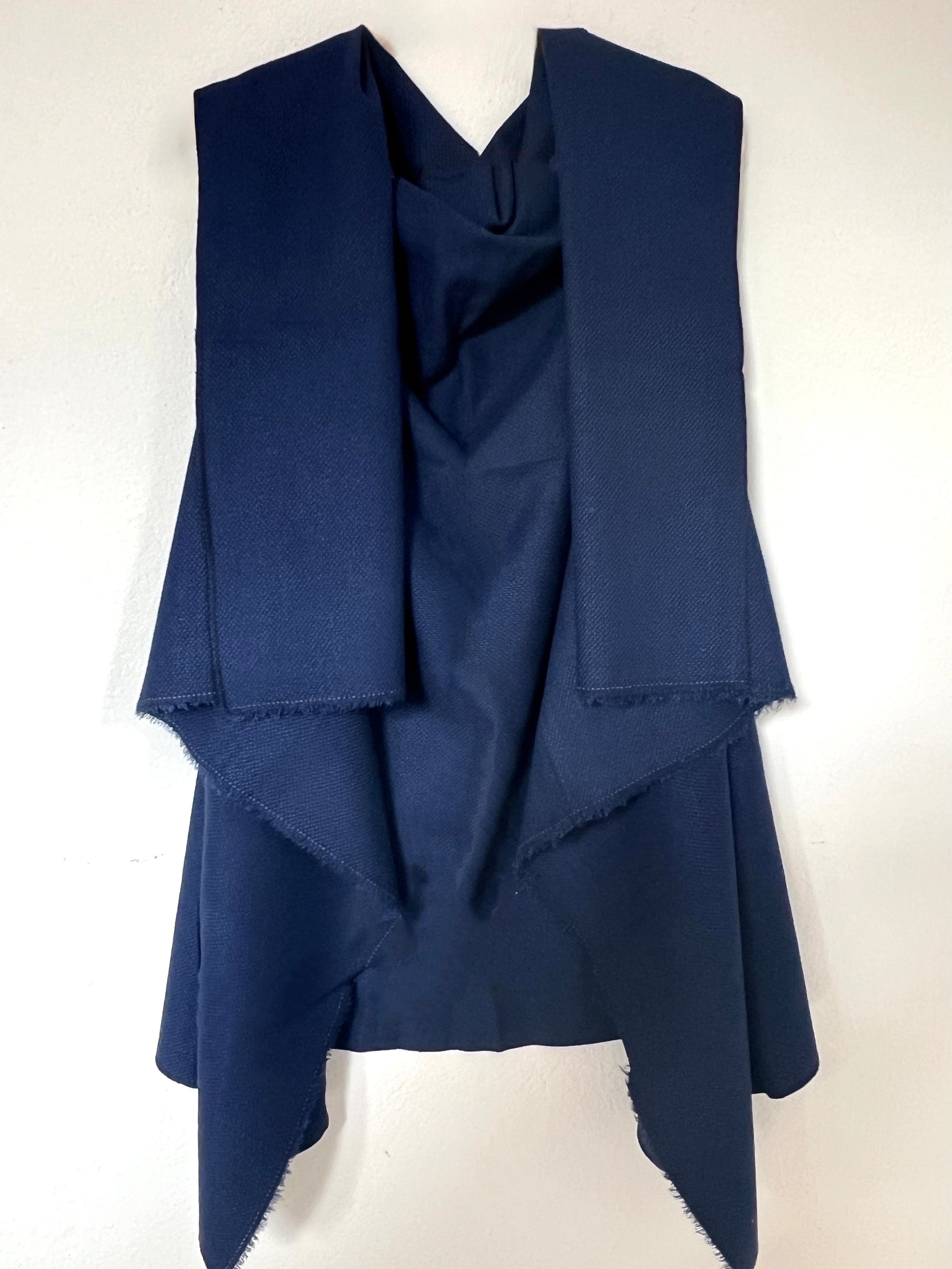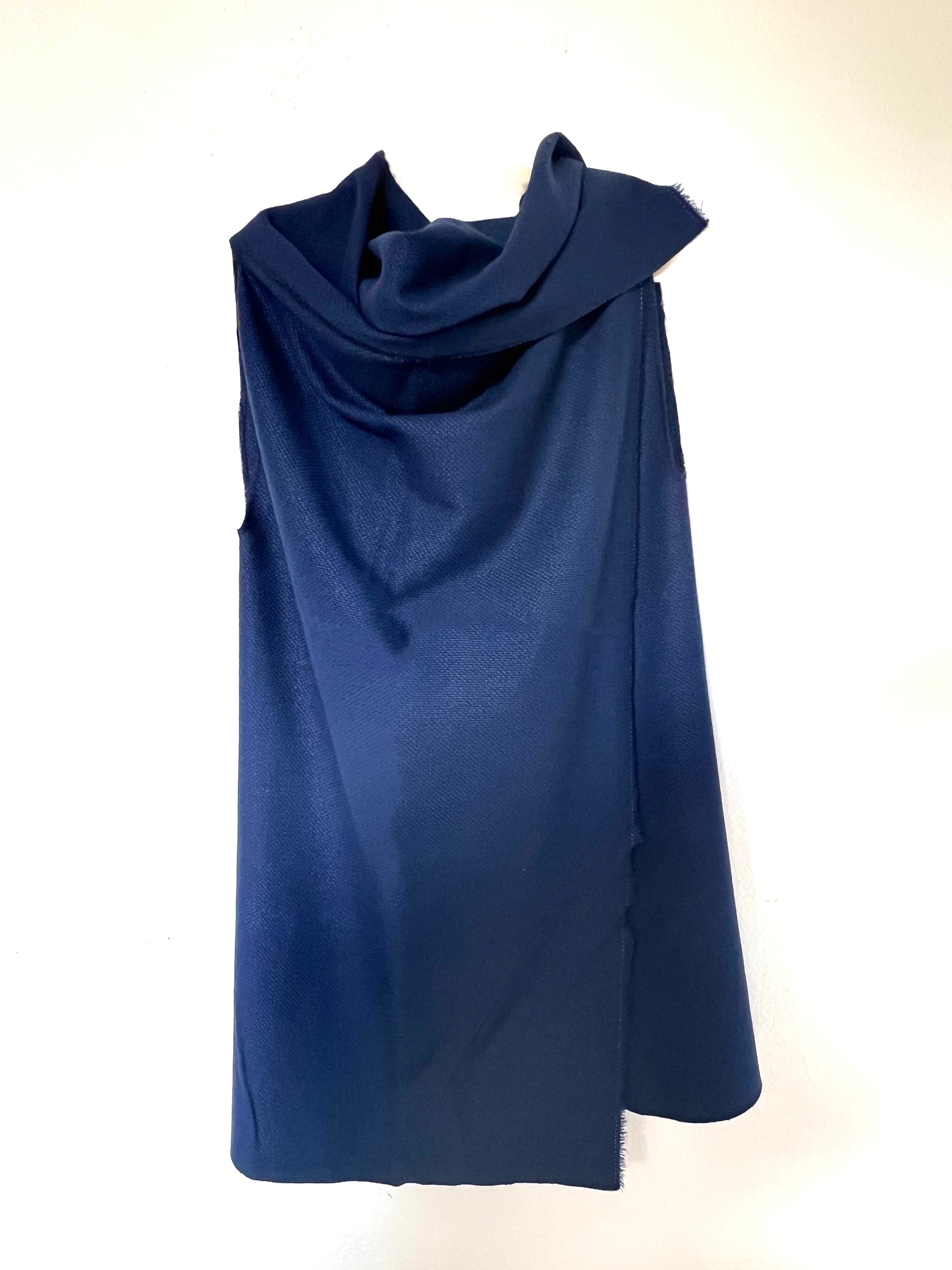 Chaleco confeccionado en un algodon de textura suave y ligeramente granulada, con un tacto agradable y una caída fluida. Un material con cuerpo, lo que permite que la prenda mantenga su forma sin perder movimiento. El tono azul profundo aporta serenidad y elegancia, convirtiéndolo en una pieza versátil para climas templados o de entretiempo. Ideal para superponer y dar un toque sofisticado a looks relajados.
