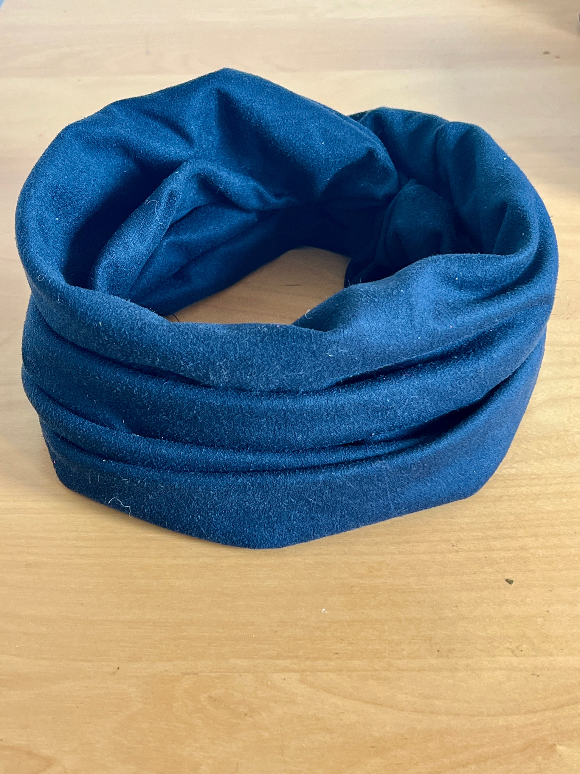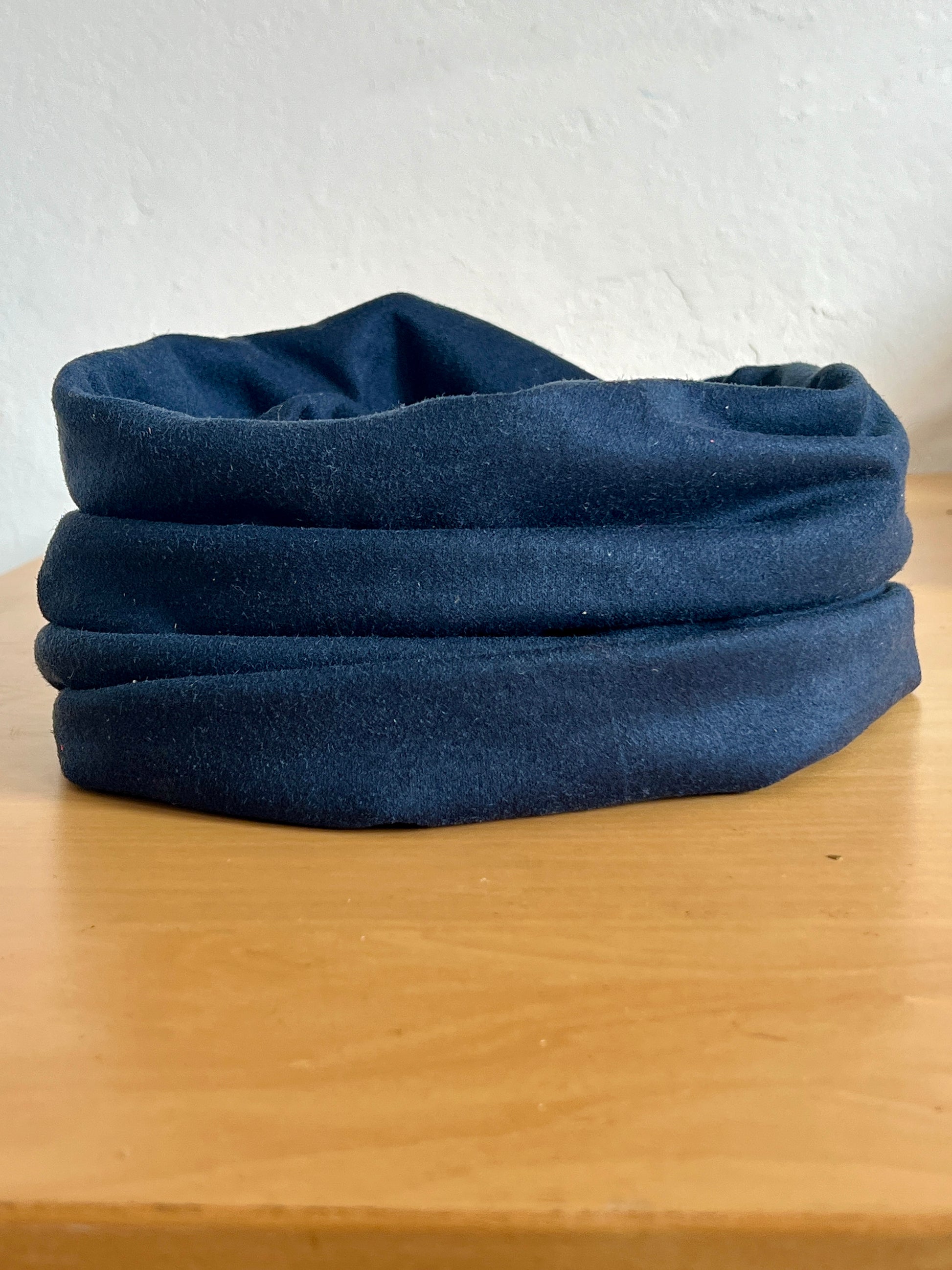 Cuello envolvente de tejido suave y afelpado,. Su textura cálida aporta una sensación inmediata de confort y protección en los días fríos. El azul profundo le da un carácter elegante y atemporal, fácil de combinar con cualquier abrigo.