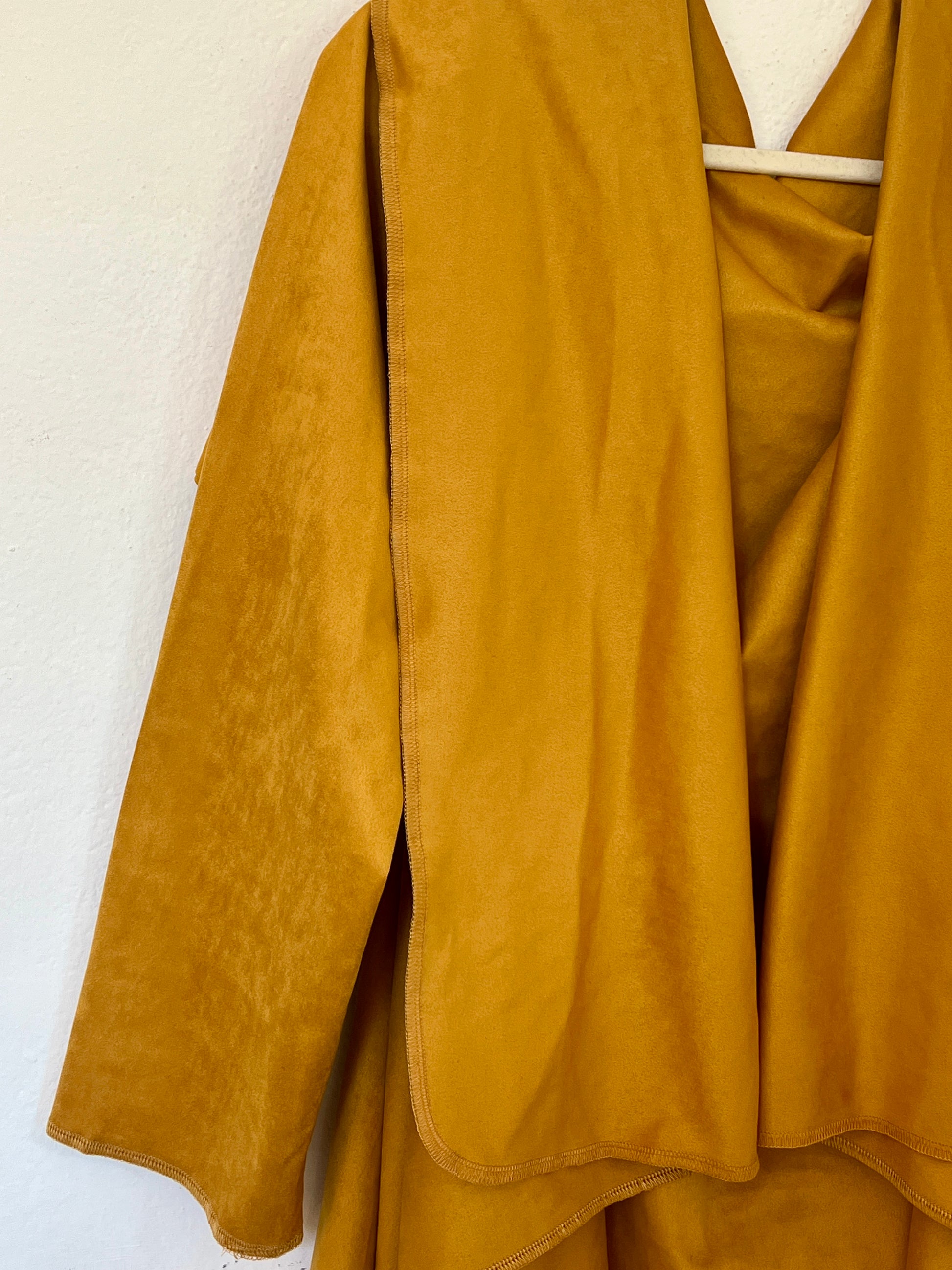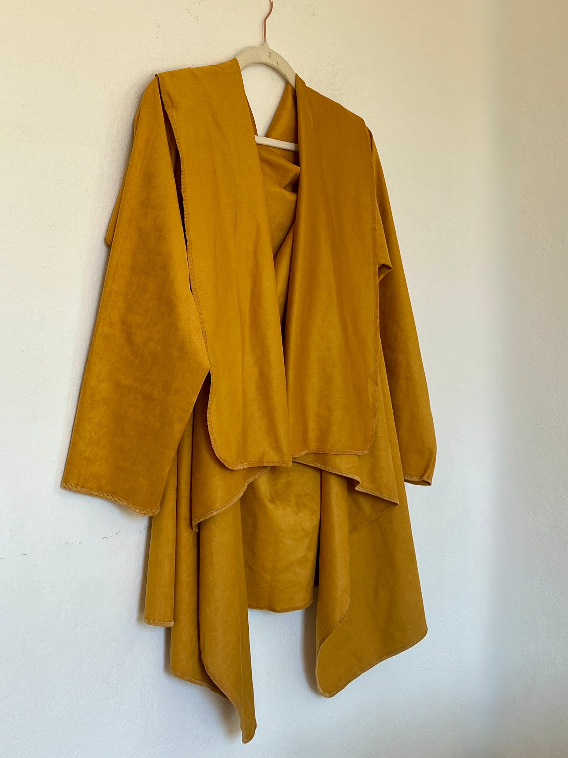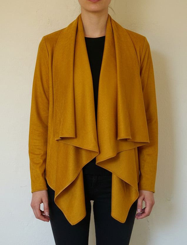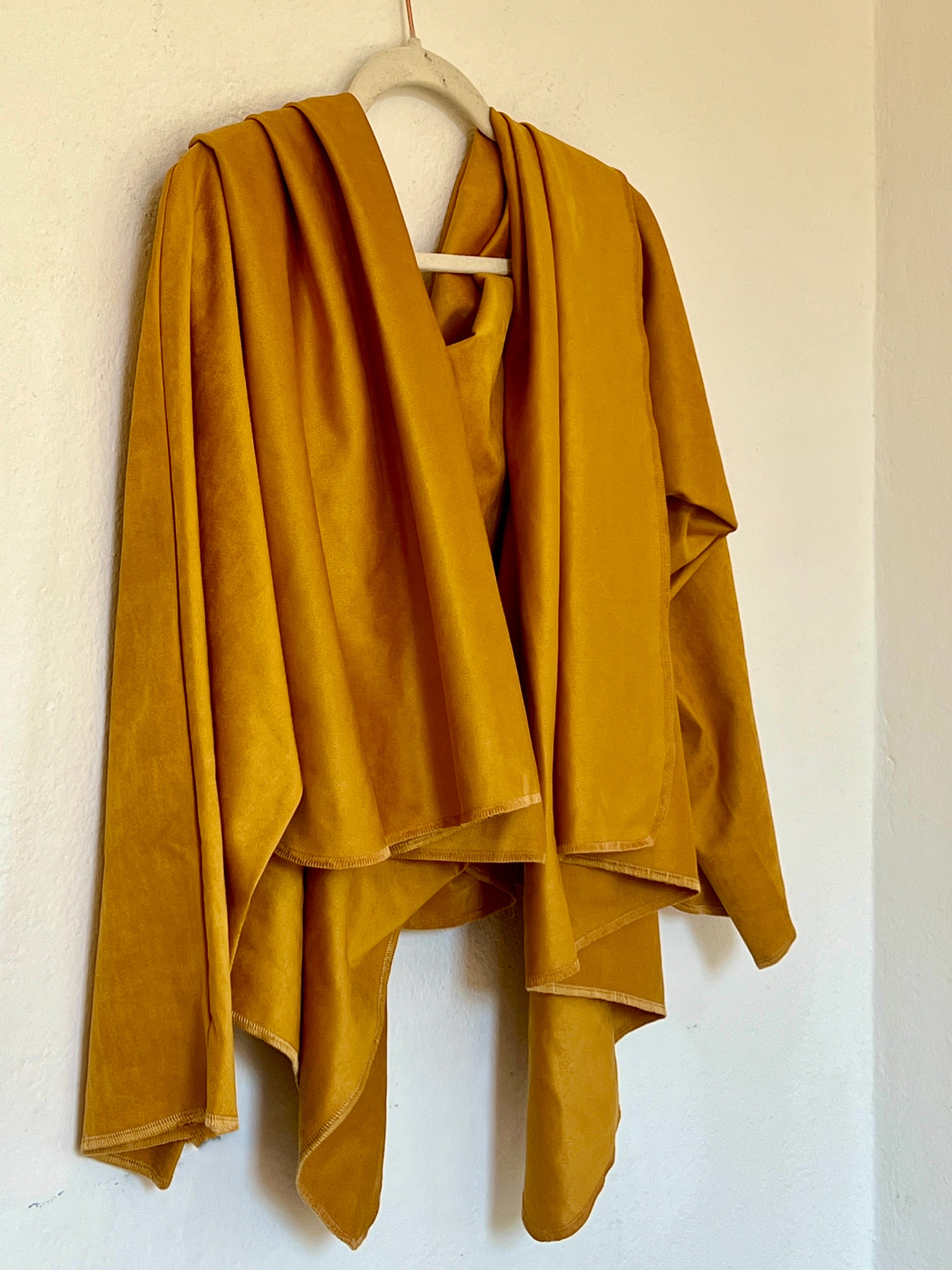 El tono mostaza cálido y profundo es el gran prtagonista ya que aporta luz y carácter a cualquier look. Su textura es agradable al tacto y transmite una sensación envolvente y confortable. Se adapta al cuerpo y al estilo de quien lo viste.