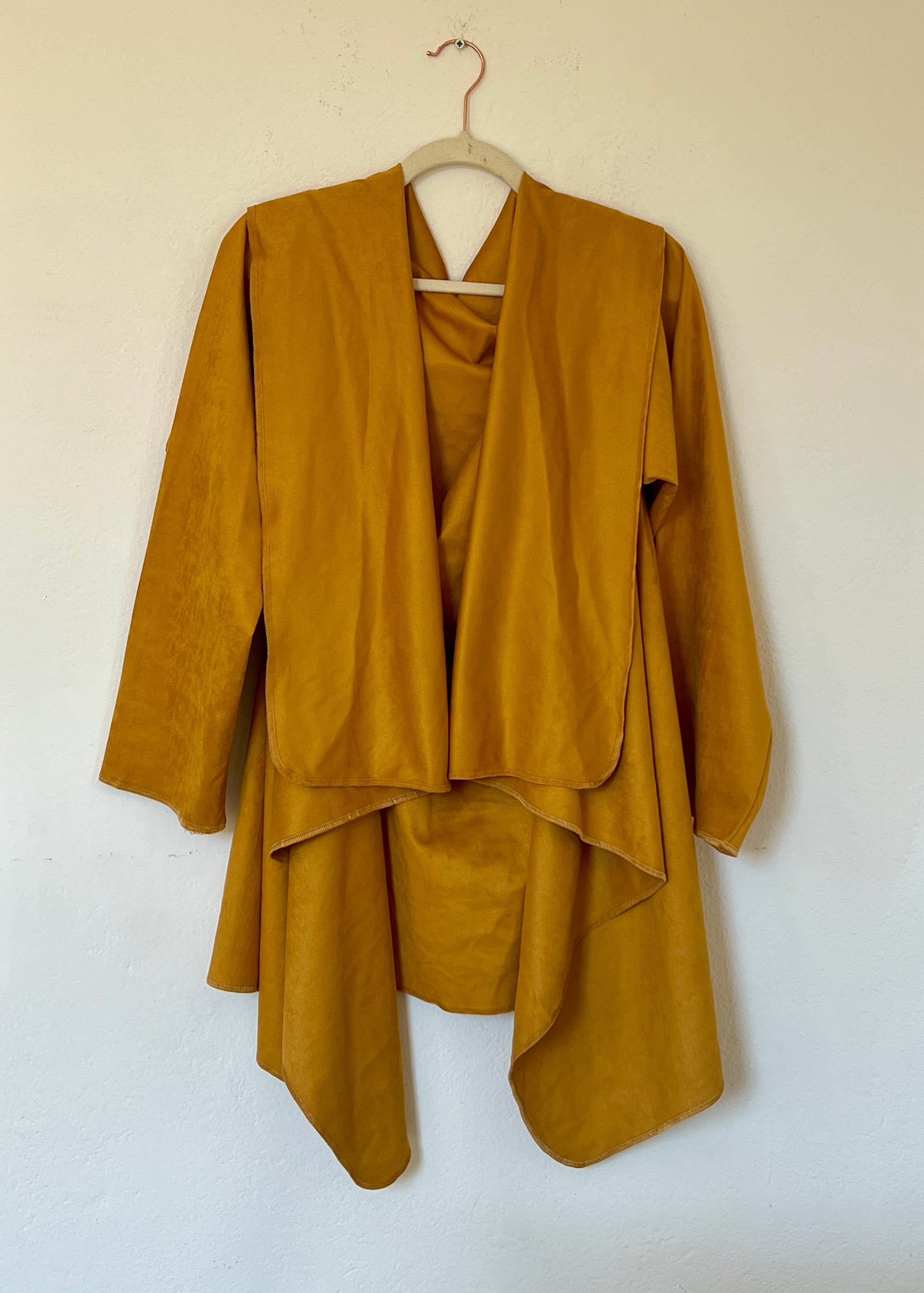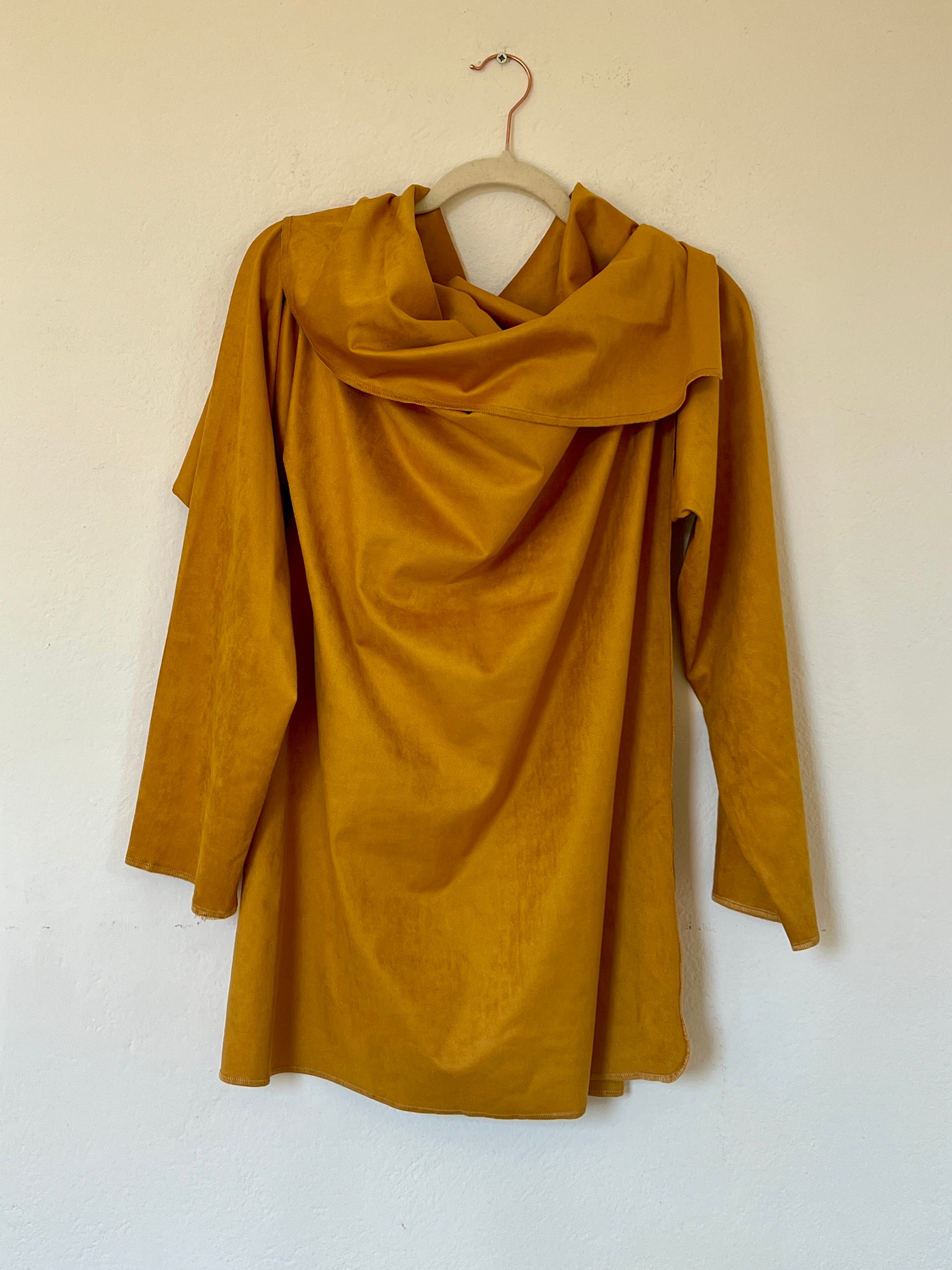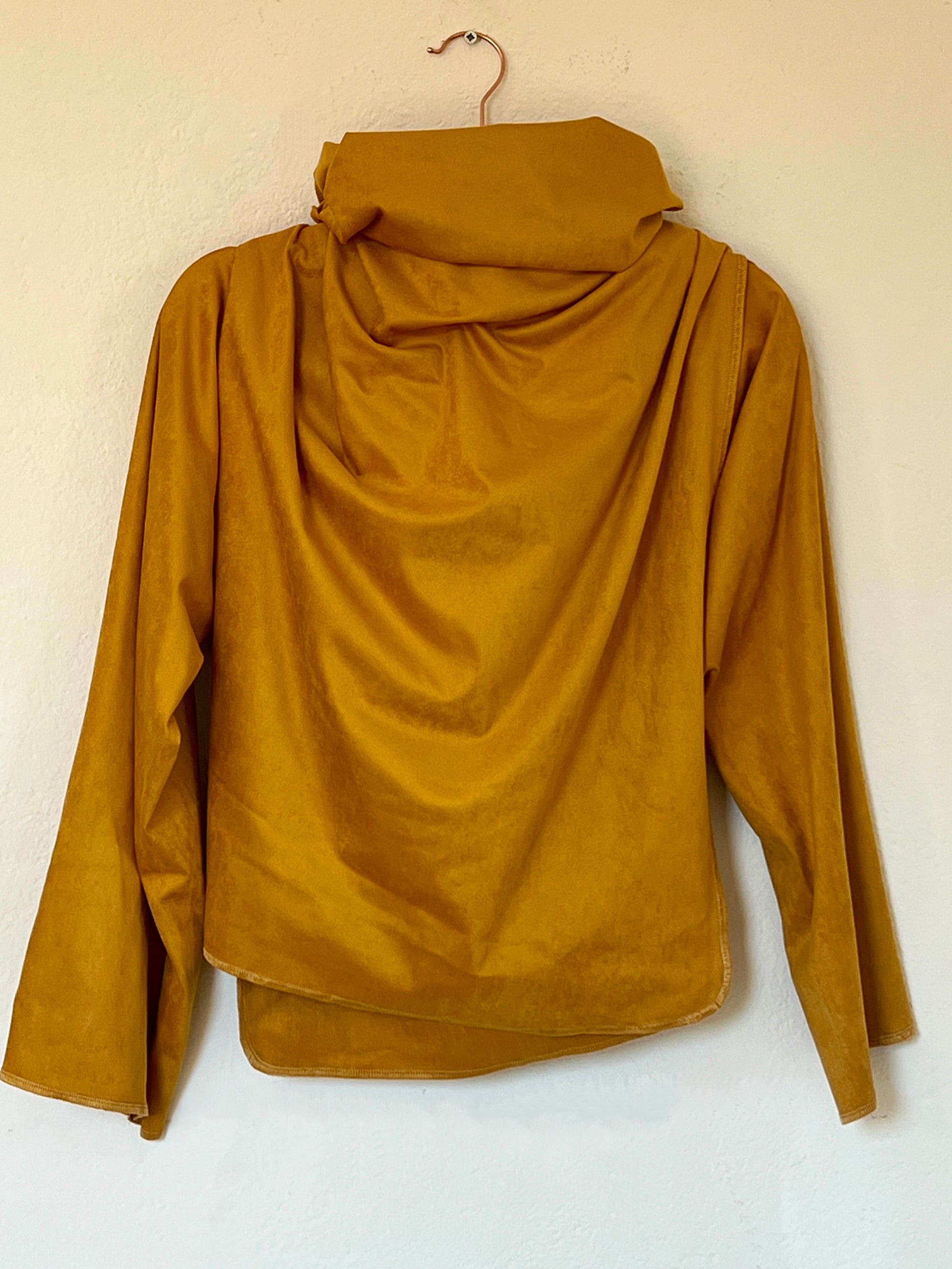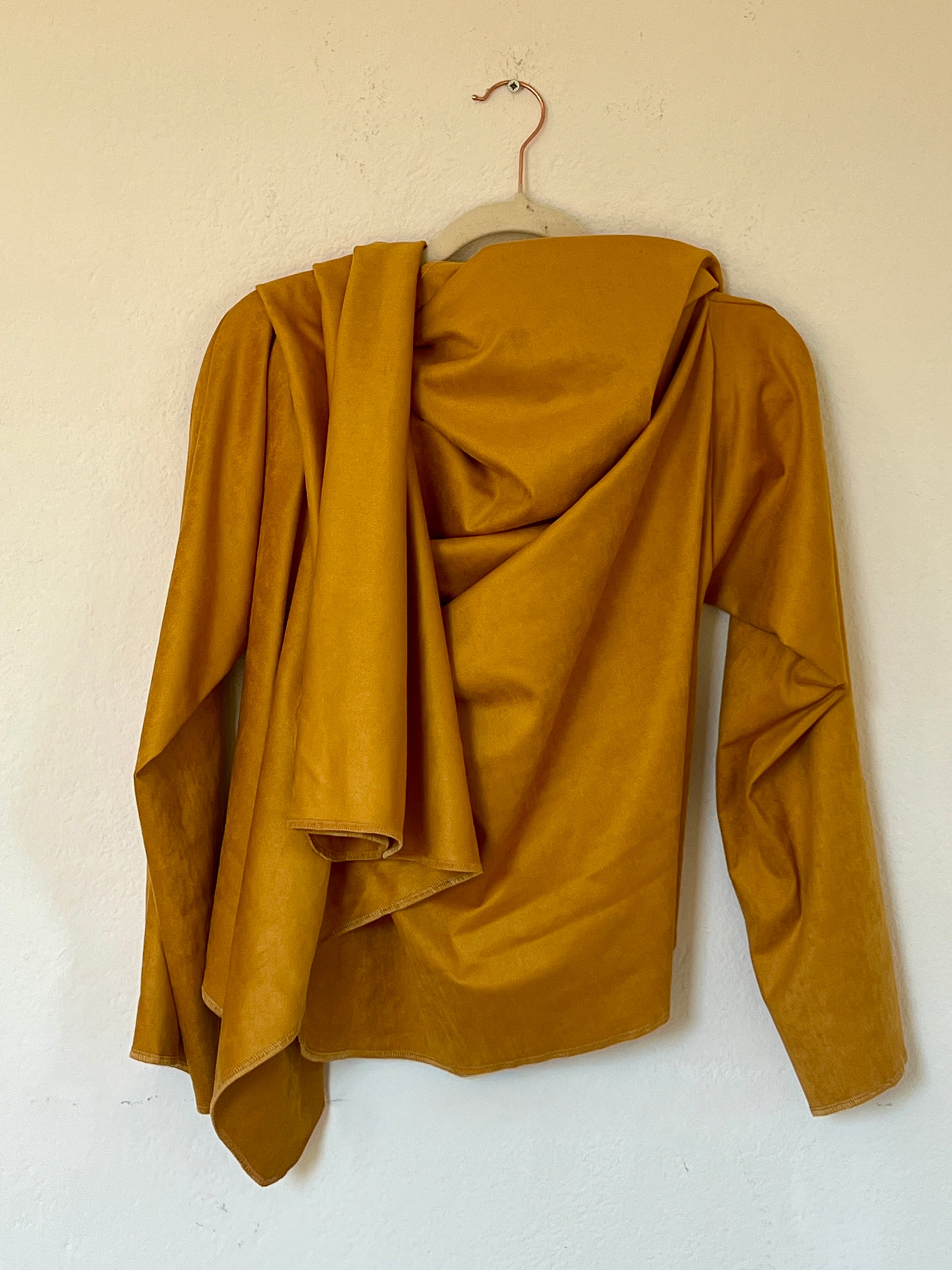 El tono mostaza cálido y profundo es el gran prtagonista ya que aporta luz y carácter a cualquier look. Su textura es agradable al tacto y transmite una sensación envolvente y confortable. Se adapta al cuerpo y al estilo de quien lo viste.