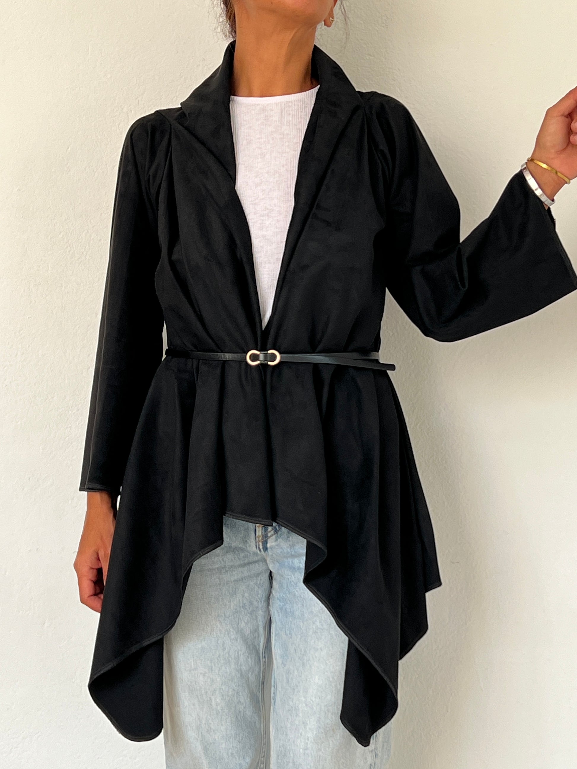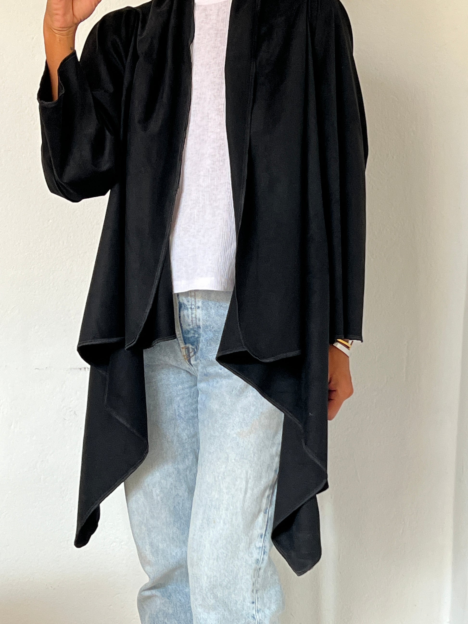Este abrigo se caracteriza por su elegancia fluida y su sobriedad.